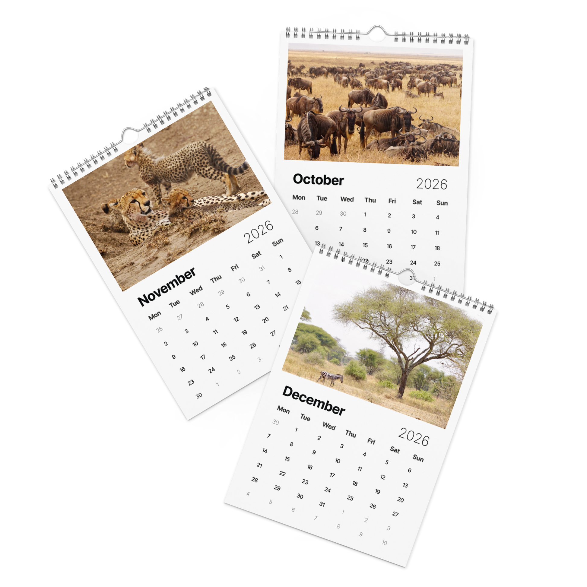 This wall calendar takes you on a visual journey through Africa's most impressive landscapes and wildlife. 12 captivating photographs capture the continent's magic: majestic lions in the golden grass, herds of elephants in the vast savannah, fiery sunsets over the Serengeti, and the endless expanse of wild landscapes. Each month opens a new window into the world of African nature and wildlife.